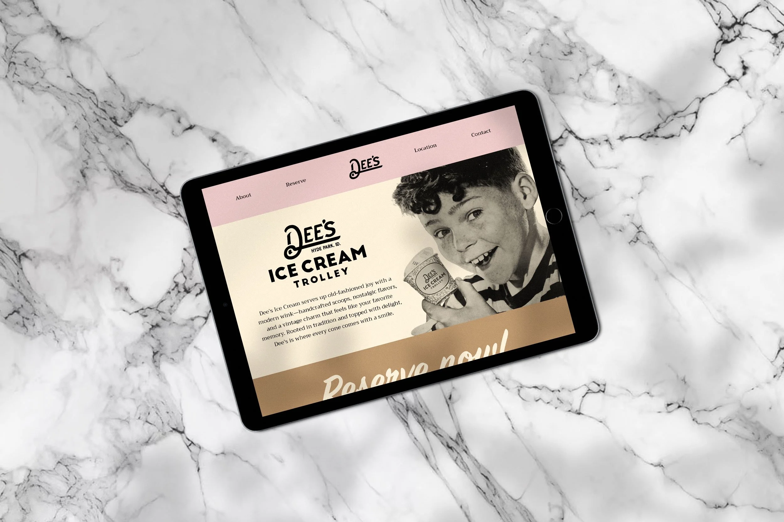 Hired to help build the visual identity we wanted to make something that felt old time-y and reflected the era when trolleys used to run up and down Hyde Park, where the Ice Cream Trolley sits today. So we mixed a few concepts together, Type from an old work truck in the 1910s and an Ice Cream that used to exist once upon a time also named Dee's as a nod to the former shop. The end result is a classic looking font that feels heritage yet modern and inviting.